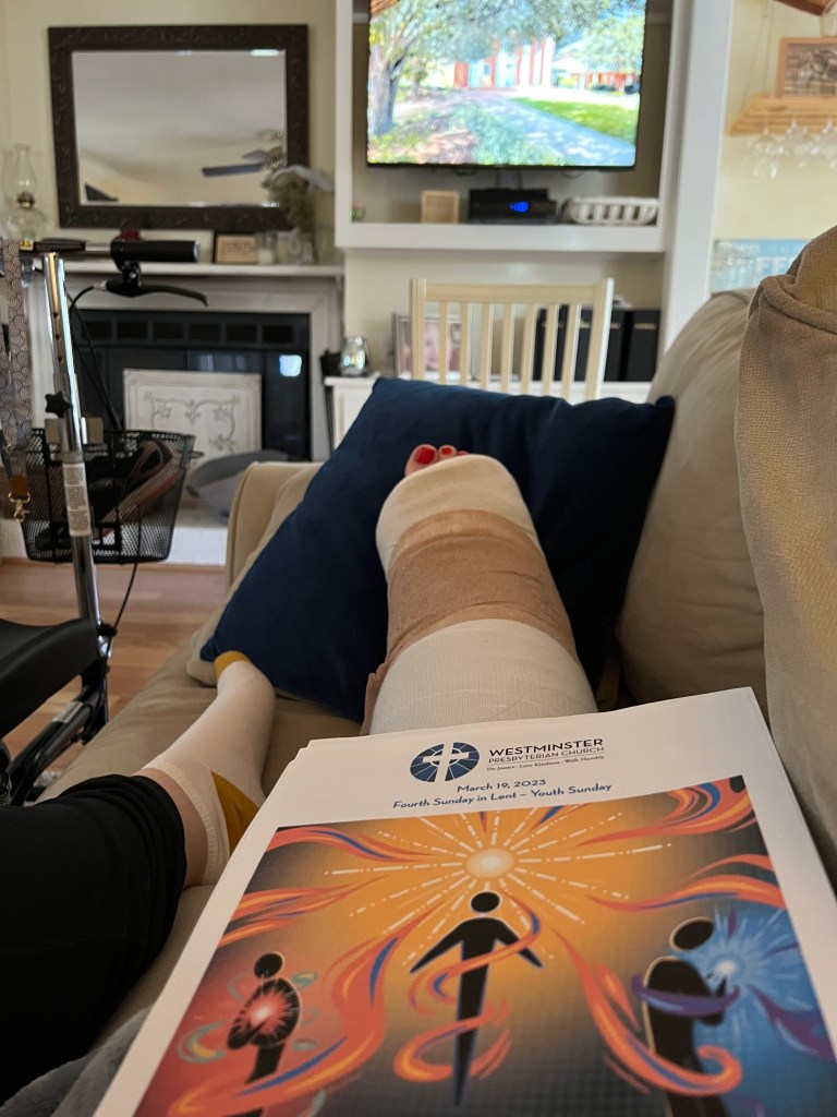 One Wednesday morning a couple weeks ago, I went downstairs to let our dog out. Something very routine. Something I do every morning and have done thousands of times as my husband and I have lived in this house over 20 years. This particular morning I tripped or misstepped on the last steps and fell. It is important to note that I am a bit of klutz. My husband calls me a “frequent faller” and if he had his way, I would wear one of those bright yellow “fall risk” arm bands that you get at the hospital every day. This wasn’t my first fall down steps. It wasn’t my first fall down these steps. But it would turn out to be my worst fall! In the past after a fall, I might have a bump or bruise or two and a minor sprain. Nothing that a little ice, rest, and an ace bandage couldn’t fix. This time, I could not stand up at all and we knew immediately I wouldn’t be bouncing back quite as quickly.